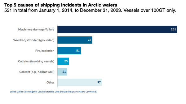 Dal punto di vista assicurativo emerge un elemento chiave: la principale causa di sinistro non è rappresentata da collisioni, ma da guasti tecnici. Più che colpire le navi, l’Artico le mette sotto stress. Allo stesso tempo, il rischio ghiaccio è oggetto di specifiche condizioni contrattuali: limiti alle aree di navigazione, requisiti di ice class e franchigie dedicate. In caso di accesso non autorizzato, la copertura può essere mantenuta solo previo accordo con gli assicuratori, con condizioni più restrittive e additional premium.